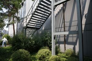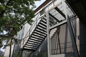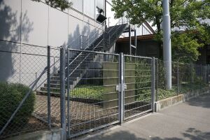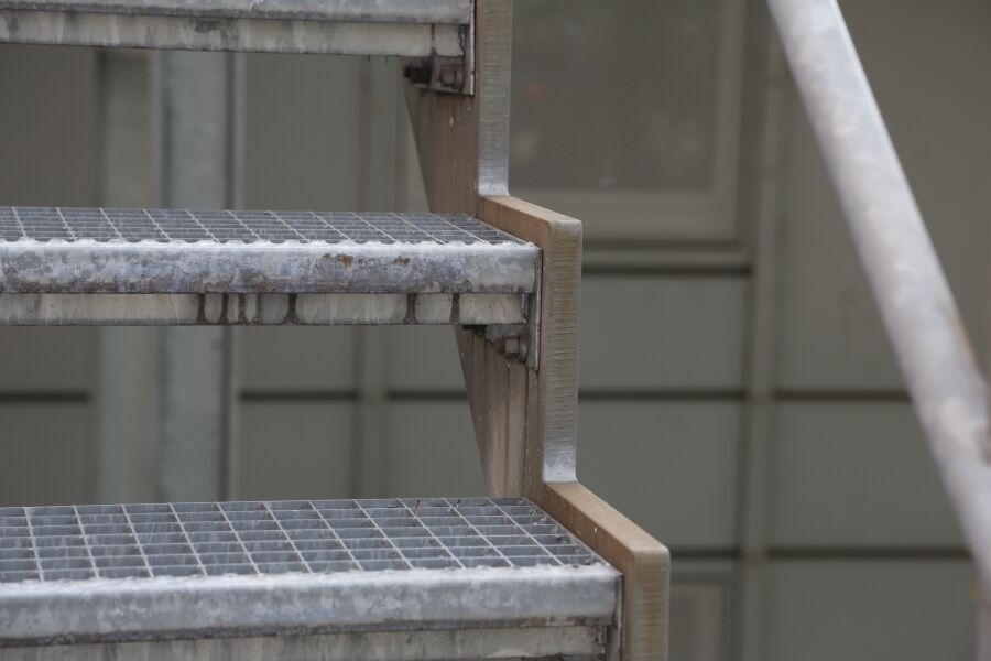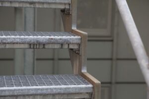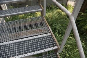 | Beschreibung | Aussentreppe aus Stahl. Feuerverzinkt. Wangen aus massivem Stahl. Stufen und Podeste aus Gitterrost. Treppe ist aus zwei Elementen auf Höhe des mittleren Podests zusammengefügt. Allgemein leichte Rostablagerungen. Steigung: ca. 20cm, Auftritt ca. 25cm. Unterer Lauf: 16S Oberer Lauf 16S. | |